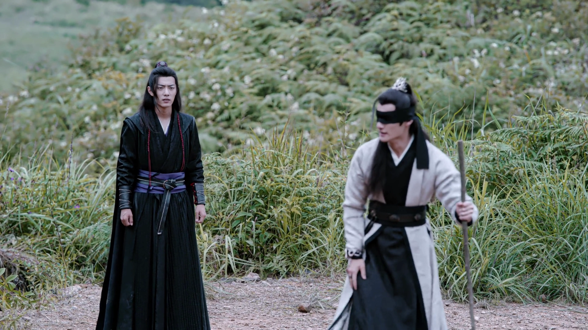 Song Lan guards Jiang Yanli to approach the Lanling Jin Clan for shelter, while Jiang Cheng and Wei Wuxian set out for Baoshan Sanren. Jiang Cheng makes his way up the mountain alone, blindfolded and instructed to pretend he is Wei Wuxian.